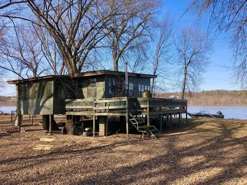 This extremely rare find is the perfect base camp for all your Mississippi River adventures. Located on an island on Pool 4 less than 2 miles north of Red Wing this rustic cabin and 7 acres is accessible only by water. The cabin overlooks the main channel of the river and is situated on an island that separates the Mississippi from thousands of acres of backwater sloughs, channels and lakes. The area lying west of this parcel is where the Cannon River, Vermillion River and Hay Creek all converge to form a vast system of back channels and lakes. Cabin features include a wrap around deck, kitchenette, propane lights and a wood stove for heat. The cabin & gazebo have a ton of old school character and with some TLC could be brought back to their former glory. The key factor with this property is that it is nearly impossible in this day and age to get a new building permit for a cabin in a location like this. From the deck on east side of the cabin you have great view of the water and river traffic. This property also features private frontage on both sides of Cannon Lake where the current owners have constructed private duck blinds on either side the slough. 40 miles to Minneapolis & St Paul. 45 miles to Rochester.