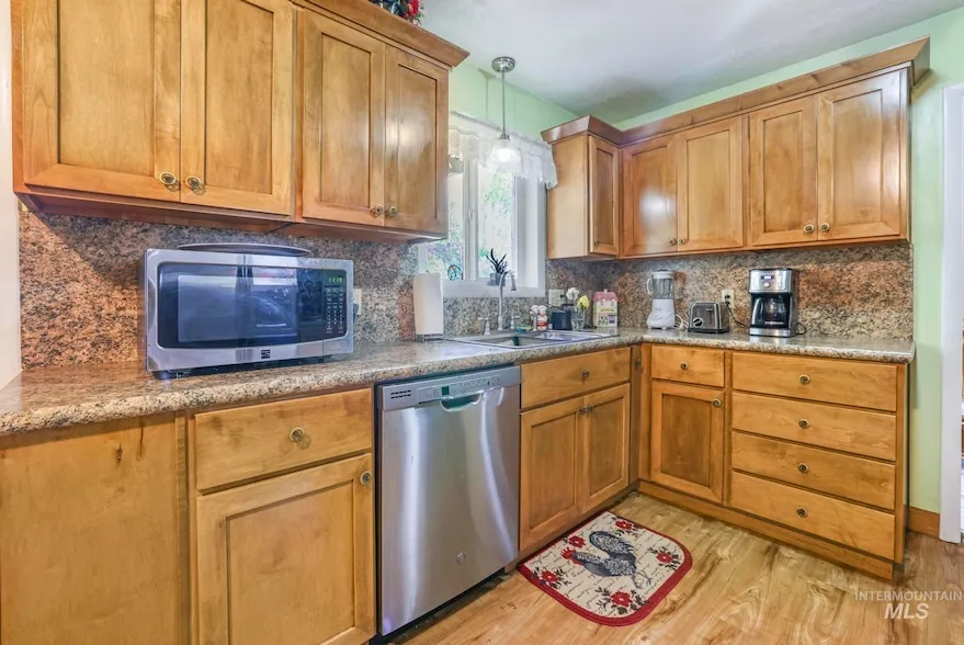Welcome to 1533 9th Avenue E in Gooding! This 4-bed, 1.5-bath single level home spans 2,002 sq ft. Inside, find a welcoming living room, kitchen, and spacious family room with cozy bookshelves and a gas fireplace. Convenience is key with an attached 1-car garage and leaf guard gutters. Outdoor delights await in the expansive backyard; Imagine lazy afternoons under the pergola on the back deck/tinkering in the storage shed; tall, mature shade trees adorn the property, providing serene seclusion, while the backyard boasts a bounty of fruit trees; 2 apricot, 2 apple, and 2 pear trees. The 1.838-acre property includes a pasture, perfect for livestock; Horses, Cows, Chickens, or gardening. Water rights include 1.85 shares of BWCC water delivered through the Little Wood Villa Water Users Assoc. Plenty of parking AND RV parking in the front of the home. Handicap accessible home in a quiet neig...