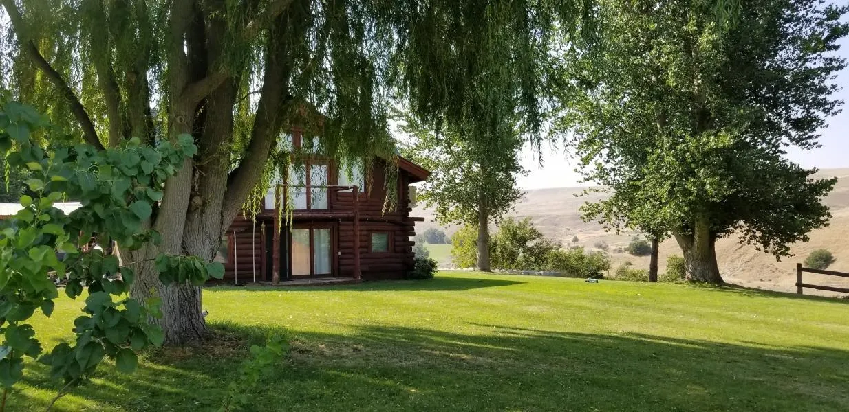 A classic and solidly constructed log home sitting on 8.65 acres of Snake River front property in the beautiful Hagerman Valley! Home has had some updates, also includes a shop, expansive lawn with mature trees, raised garden beds, water / irrigation rights share from a spring, gravity flow irrigation available for the pasture and private deep well. Ample room for new homesite (requires verification w/ county on availability of additional homesites). This is a one of kind property!