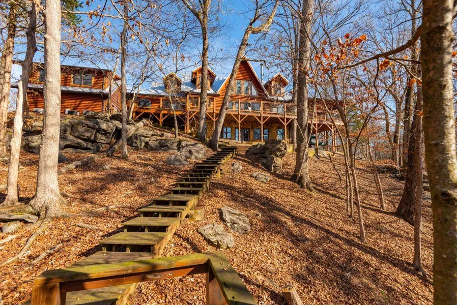 Welcome to this private gated 41 acres in N Georgia with magnificent log home, barns, arena, fenced & cross-fenced pasture, pond & river frontage. This craftsman treasure sits 1800 feet off the road with views from wrap-around porches, 2 & 3 car garages, 11 stall barn, & private boat ramp for fishing/kayaking down Coosawattee River. Windows, wood accents, 3 fireplaces & loft perfect for reading & enjoying nature. You will love the dramatic two-story foyer with antler chandelier, herringbone woodwork walls, unique ceilings, hickory floors, great room, & stone fireplace. The dining room is open to 9 seat leather finish granite countertop kitchen island with prep sink. Kitchen sink window offers views of geese in the pond & horses grazing, awesome ice machine, gas cooktop, oven & warming drawer, pantry & doors to outside decks to enjoy river sounds. Master on main level has his-n-her walk-in closets, sitting room with fireplace & large bath opens to another covered porch. Upstairs you will find a gigantic loft with the best windows for reading & overlooking the river, plus two large bedrooms each with their own private bath. The terrace level offers a wet bar, office, library, family room, theatre room & tiled art studio with pottery kiln outlet. Pasture is fenced and cross-fenced. The 2 car garage at the house has a large room up above that was used for an art room. Plus RV pavilion, 3 car garage, 4 vehicle pole barn, hay barn & Monitor style horse barn with 10 stalls & birthing stall, 100 concrete isle with drains, fly spray system, frost-proof spigots, 2 tack rooms, feed room & half bath. Pond is stocked with catfish, brim, bass, & crappie, perfect setting for a family reunion or to learn to fish. This unique home offers breathtaking views from nearly every room.