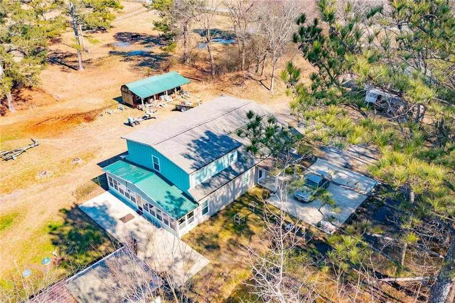 In a quiet corner of northwest Gordon County, a creative couple tailors a small farm to a perfect country home. A rustic barn transformed into a modernist country home is located on 7.9-acres at the foothills of Johns Mountain and the Chattahoochee National Forest. The views of the mountain stream, adjacent pond, raised vegetable gardens and an abundant of fruit trees and bushes offer a promise of getting back to nature. As you enter the front door, you are greeted with an impressive 2-story family room and gorgeous modern kitchen. The kitchen features an unbelievable breakfast bar, walk-in pantry and custom cabinetry. Two en-suite bedrooms and a perfect rear sunroom/porch complete the main level. The upper level offers the oversized owners suite and loft area. The rear patio is wired and ready for your hot tub! There is a backyard grilling pavilion, a perfect spot to setup a RV, a workshop and a shed! In addition, a 2-bedroom, 2-bathroom mobile home is included!