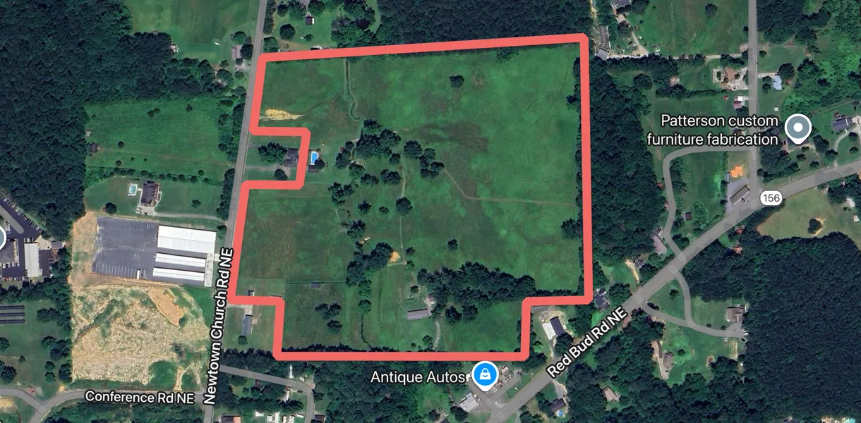 A picturesque creek winds through the acreage, enhancing its charm and potential for recreation, farming, or as a private retreat. With both Red Bud Road access and Newtown Church Road frontage, the land holds exceptional investment and development possibilities.