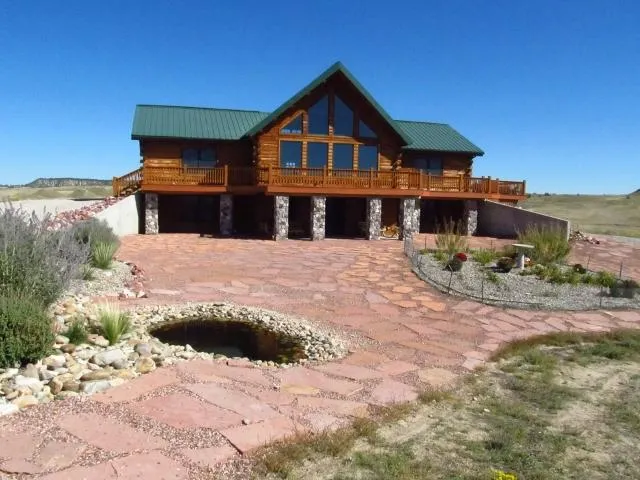 Pine Ridge Ranch, where this beautiful log home is located, is just five miles north of the town of Fort Laramie, Wyoming. This 10,000 acre private ranch is mostly comprised of 40-80 acre tracts with a few tracts consisting of more than a couple hundred acres. Located at 2104 Tollefson Road, this 3,600 sq, ft log home sits on 40 acres that are entirely fenced. To enhance the beauty of the property 500 trees at approximately 4 feet tall have been planted and are watered via an automatic drip system. The area boasts some fabulous views of what Wyoming has to offer, including wide open spaces and a spectacular view of Laramie Peak out the picture windows of the main floor.