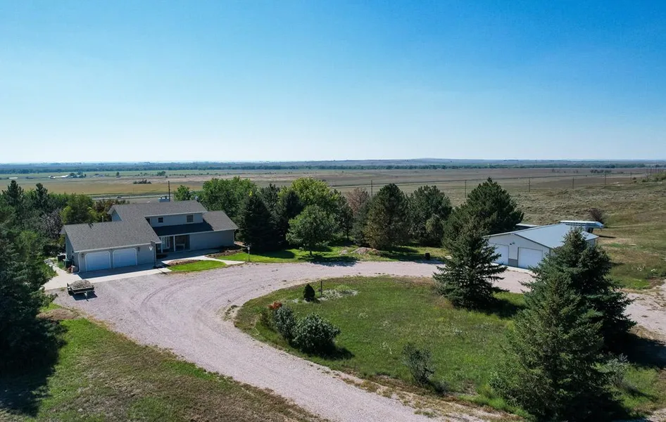 Located 7 miles east of Torrington, Wyoming, and just west of Henry, Nebraska is the Hendricks Acreage. This property offers a 4-bedroom, 3.5 bathroom home that was constructed in 1993, along with a 30X40 shop, and additional outbuildings that provide options for the hobby farmer. The home offers 2,820 sq. ft. of above grade and a full walkout basement. The spacious main floor has the primary bedroom with a beautiful, attached bathroom and walk-in closet. The upper level offers 2 additional bedrooms and a full bathroom while the basement offers an open living/family area with the final bedroom and a bathroom. The home is complete with an attached 2 car garage that is fully insulated and heated. The mature landscape that surrounds the property is impressive. There are 2 wells on the property, and one is dedicated to the expansive sprinkler systems that service multiple zones for watering...