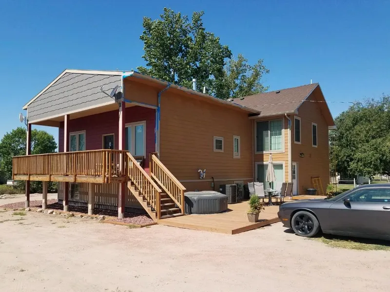 One garage is insulated and heated and seller will leave 2 new garage doors. Seller is painting the exterior of the house and completed the lower deck and an additional deck off of the master bedroom will be completed before closing. In addition the seller will leave the white cabinet in the kitchen, brown shelving in the master bath, swamp cooler (has not been used recently) and the garbage disposal (new in box) plus a new central air unit is ordered.