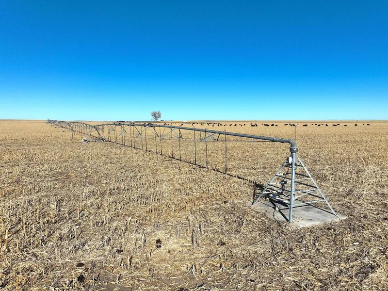 LEGAL DESCRIPTION: TR 1: A TRACT IN THE S/2 14-11-27 AND A TRACT IN THE NW/4 23-11-27 TR 2: NW/4 AND N/2NE/4 OF 14-12-27 LOCATION: See map for directions. SIGNS WILL BE POSTED!! CROPS: There are no growing crops. POSSESSION: Date of closing. MINERAL RIGHTS: All of the Seller's interest will transfer to the Buyer' at closing. FSA INFORMATION: All future FSA farm program payments shall follow the crops and shall be paid pursuant to FSA regulations. See chart below for base acres/yields. Statements, While Not Guaranteed, Are From Reliable Sources. WATER RIGHT INFORMATION: Thereis one irrigation well permitted under WRF#16459 in the 15 inch LEMA zone with 689 AF remaining for 2025-2027. It isauthorized for 350 AF at 1200 GPM. There are 125 acres under the pivot & 50acres in drip irrigation. The pivot is nozzled at 450 GPM. IRRIGATION EQUIPMENT: Includes7-tower Zimmatic pivot with motor.