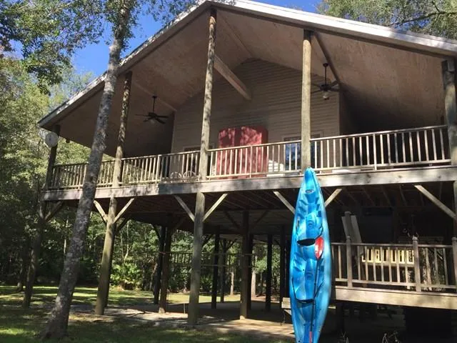 Convenience of use! Talk about a functional River property! Easy, Clean Access! Private! Lovely HW Floors with vaulted ceiling. Wraparound Deck Low Maintenance elevated home on the Banks of the Ochlocknee River! Property has its own elevated well, Concrete Boat Ramp, Dock, Fish Cleaning Station and Fire Pit! Good Looking!! Full Slab concrete underneath home for fish fry's, Family Gatherings or Parking. Open Floor Plan, with downstairs master BR and with 2 BR upstairs. River Views from among the tree tops. The fishing? Many a cricket has lost his life on this river! Beautiful low maintenance yard. You really have to see how easy it is to use and enjoy this tract.. Good looking properties next to this tract. Plantation across river from this property.Property is 5+/- Miles South of Cairo, 12 Miles East of Thomasville and 10 Miles North of the GA/FL LIne at Hwy 319. This works out about a 12+ mile Kayak trip from Hwy 84 to the property.