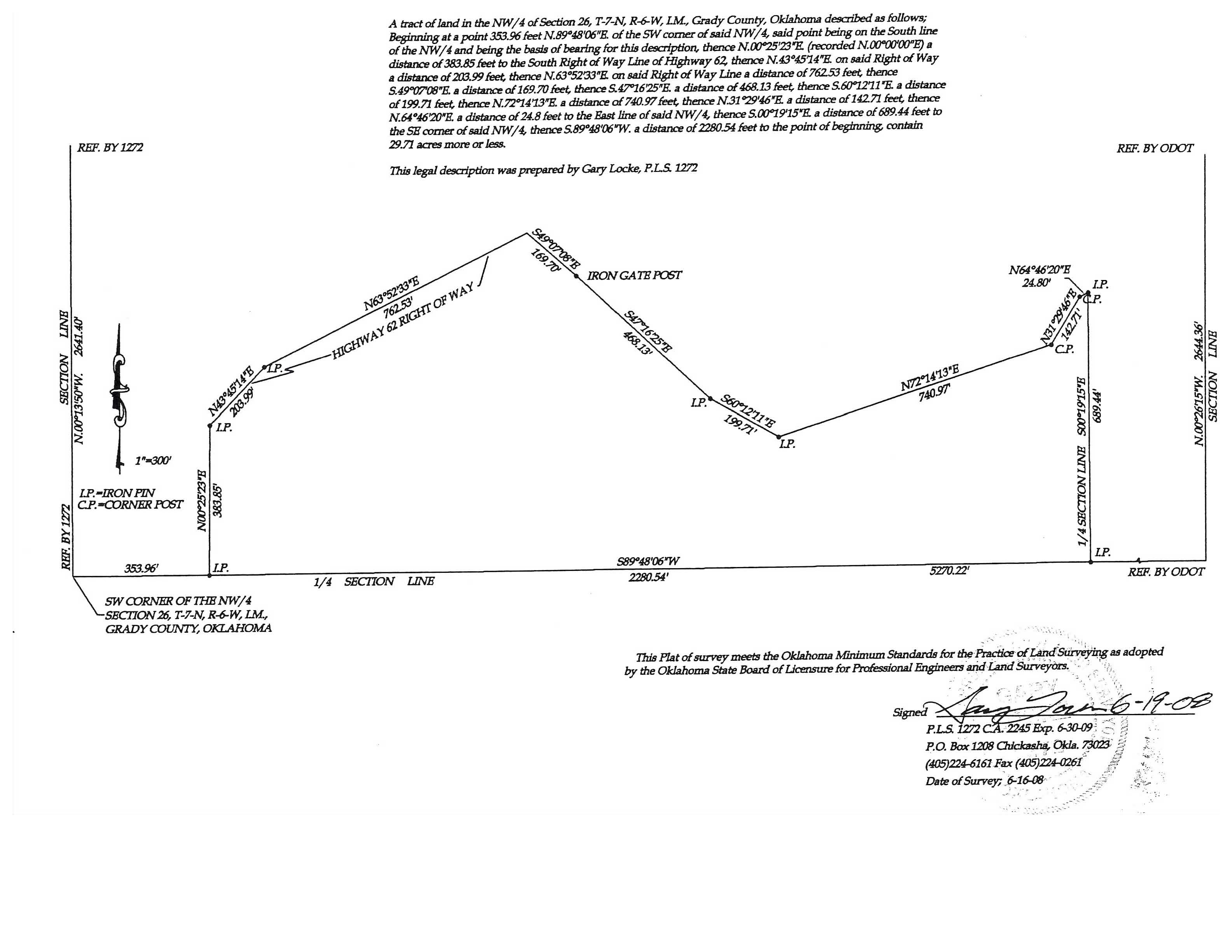 Legal Description: a 29.5 acre tract located in the NW/4 of 26-7N-6 W.I.M. Grady County, OK. More particularly described in metes and bounds.