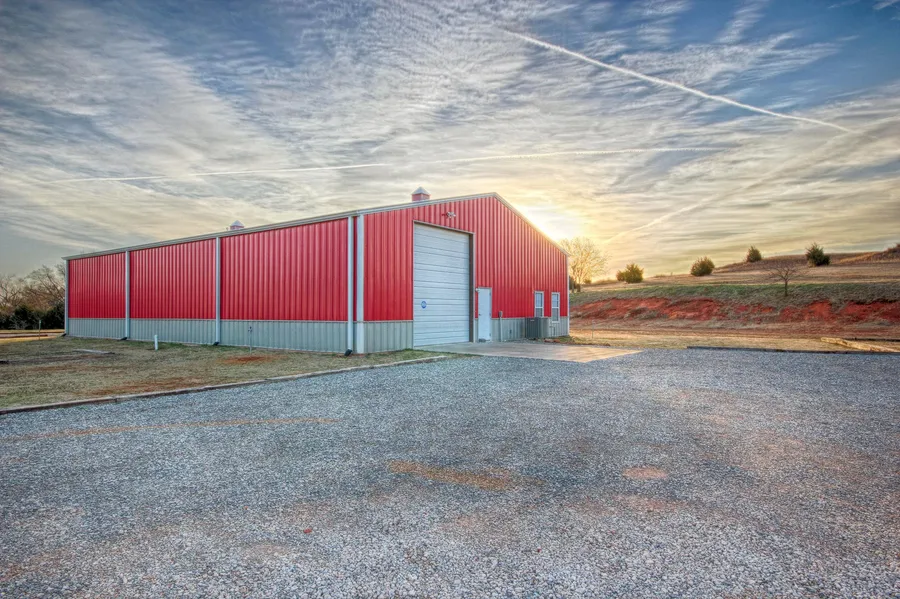 Price Reduced! Acreage Home on 29.71 acres is steel-engineered w/ huge pull-thru shop/garage and two RV doors. Beautifully remodeled with spiral staircase,new carpet,new tile,crown molding, new cabinets, new HVAC heat pump w/humidifier and propane gas backup. Kitchen has double ovens,granite counters. Master bedroom has fabulous master spa, oversized shower and walk-in closet.Land has character and views. Above-ground storm shelter. Underground sprinkler system. Seller will divide home and land.