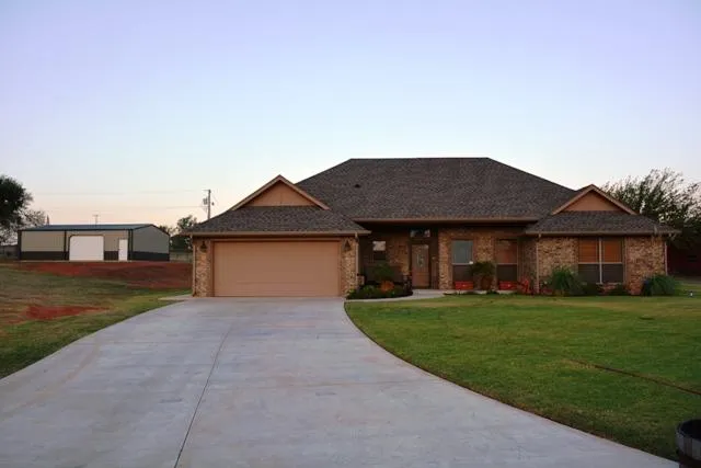 Quiet & Quaint cul-de-sac property on 1 acre offers seclusion and a pretty location. Newer home has open, flowing plan w/split bedrooms. 30X40 steel-framed, insulated workshop with commercial-grade doors. Granite counter tops in kitchen and baths. Stainless steel appliances. Double vanities in both baths. His & her closets in master. Welcoming entrance. Invisible fence. Concrete pad for a pergola or outdoor fireplace. Huge backyard.