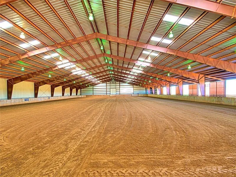 Amazing Horse facility with beautiful home and private lake, just minutes to OKC airport. The Show Barn is 200 x 300 w/30 Stalls, 2 wash racks, Aqua Tread Track and 140 x 250 indoor arena w/ 6 - 30 amp RV plugs & shavings storage built in 2007. 2nd Barn is 60 x 175 w/ 60 ft round pen & 2 foaling stalls. 3rd Barn is 24x48, property is completely fenced with pipe fencing. The 3485 sq ft home has a great open floor plan w/stunning master suite, large eat in Kitchen, formal dinning, game room,, office and beautiful salt water pool all over looking a spring fed lake. Trainers apartment is 2 bedroom, 1 bath w/office or 3 bedroom. Don't miss out on this amazing farm only 20 minutes to OKC.