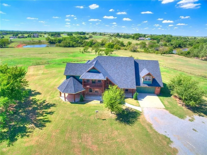 Stunning custom built home on 13.85 acres in the Friend School district. This home has beautiful tall ceilings with crown molding, gorgeous staircase, living room with stone fireplace, large formal dining, beautiful kitchen with gas range, built in microwave, office, art room with an awesome view, and a butler's pantry. The master bedroom boasts a fireplace and the master bathroom has a separate shower, soaking tub, and large walk in closet. The upstairs is complete with a large bedroom, large closet, full bath with double sinks, beautiful granite, and double sliding doors. The 50x40 shop building has large living quarters. (2 bed, 1 bath with kitchen and living area), 10x20 heated and cooled tack room and a horse shower with hot and cold water. 16x30 dog kennel, large open patio with fireplace, grill and pizza oven. This home has a storm cellar, two septic systems, rural water and well ...