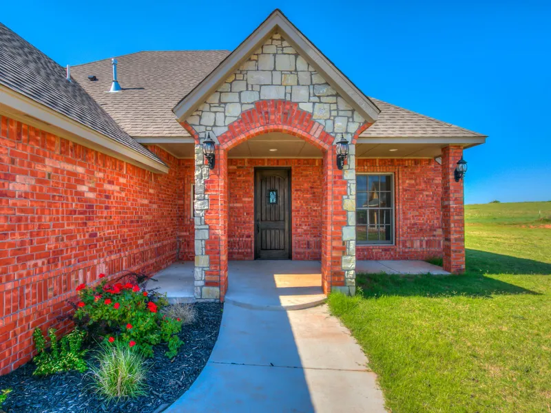 Step into a Barreled Wood Ceiling Entry and Your Search is Over! Light-filled living room opens to Dream Kitchen with chiseled granite island, breakfast bar, abundant knotty alder cabinets, gas stove and walk-in pantry. Marvin wood windows, varied ceiling heights, two fireplaces and woodwork details set this home apart. Master suite has tiled, walk-in shower, stylish vanity, dresser & bench in large walk-in closet. Study with transom window & closet. Indoor and outdoor fireplaces. Cul-de-sac location with a large side yard has plenty of room for a workshop on .51 acres. Affordable luxury at a great price! Eagle Lake Estates is a new addition in West Central Blanchard. It offers a rural setting but is close to shopping and schools. City water, natural gas, concrete streets and easy access to major highways. Street lights coming soon!