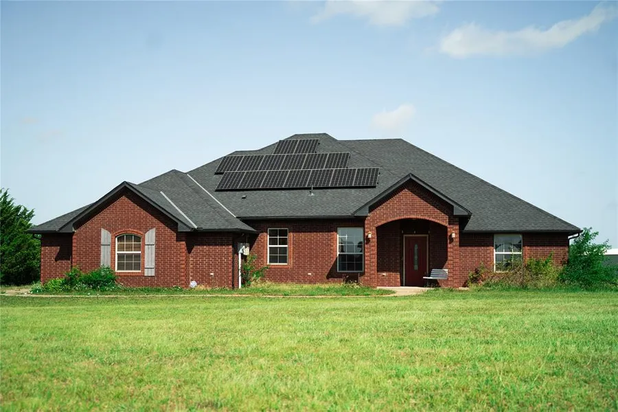 Welcome Home! This beautiful 3 bedroom, 2 bath, 2072 sq ft home is sitting on just under 4 acres of land, right in the heart of Tuttle. On one of the larger lots within Chisholm Trail Addition, this home has many key features making it a special spot. Outdoor features, such as a covered porch, a private spring-fed pond with live fish, foliage throughout the back of the property, solar panels, a 3 car garage and new roof done in 2022. Indoor features, such as fireplace in the living room welcoming coziness on a cold day. As well as, a walk in laundry room with a built in sink and built in cabinets for storage, a jet / jacuzzi and double vanity in the owners suite bathroom, with built in’s in the closet. An office space in the entry way, that could be used for an extra room, and a new AC unit in 2022. The main living space and kitchen offers an open concept! The kitchen has costume cabinetry, and current owner is leaving all appliances. This home offers so much potential, privacy and comfort, to make your perfect dreamy oasis. Sold in as is condition. Buyer to verify tax information, school district, and sq ft.