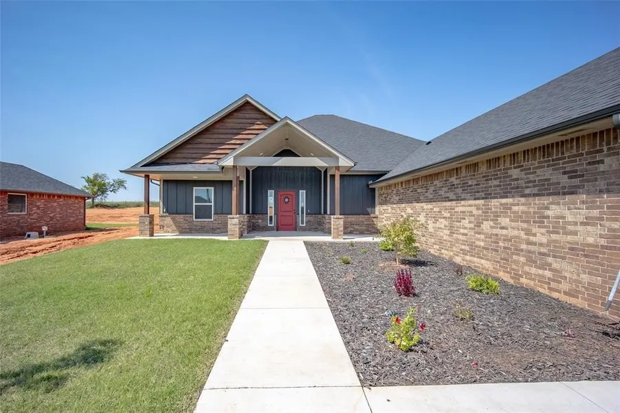Great new construction home in Sandstone Ridge! This is a spacious home with 2300sf. 4 bedrooms and 2.5 baths with a 3 car garage. The kitchen has lots of storage, an island, and a great Butler,s pantry!! The home has wood look tile and custom stained cabinetry throughout. Large Laundry. Builder is adding a 24x40 Shop with 12 ft walls and 10x10 door. Shop will be completed by closing. Bridge Creek Schools! Seller is offering $10,000 in buyers closing costs, and or incentives (buyer’s choice)!