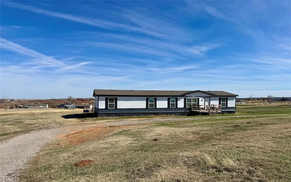Clean manufactured home in Cottonwood Subdivision on a little over 2 acres. This is a large home with good sized bedrooms, 3 full bathrooms and a huge living room. The open kitchen is welcoming and there is wood look flooring throughout!You will love the morning and evening sunrise and sunsets, which are beautiful from this property! The deck offers a great opportunity for evening porch sitting. There is a nice circle drive for friends and family to visit and the yard is large enough for volleyball, corn hole, and or a nice firepit for fun and fellowship!Interior photos coming soon.