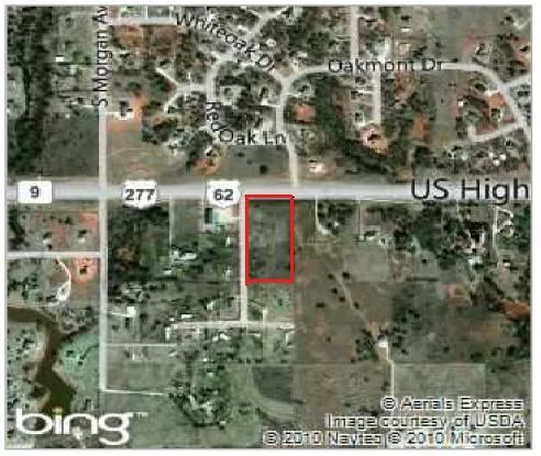5 Acres - Highway 62 Frontage. Great location near large housing developments with newer homes in SW Blanchard.