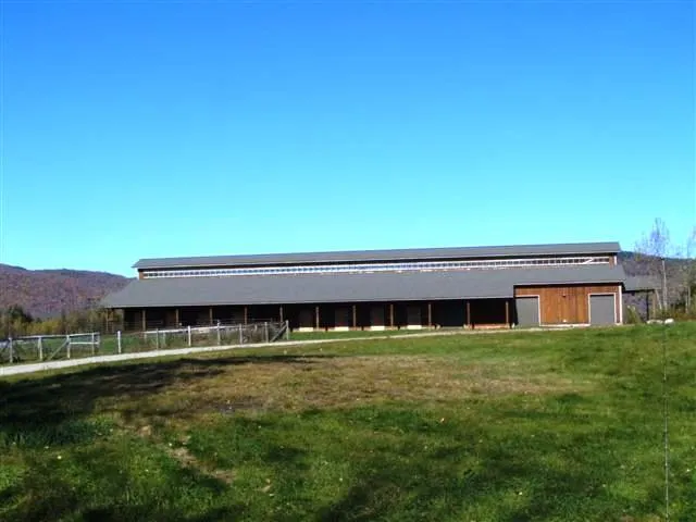 The uniqueness of this property is this stylish barn complex has room for 572 s/f of living area over the heated ell. It was designed to be a trainers apartment but could easily be summer home for you or a large apartment for your farm manager. It is plumbed, wired and is ready for insulation and sheetrock. Another option for you as owner of this gorgeous facility is to build the home of your dreams in the perfect spot, as a three bedroom septic system is already in place. The custom-designed A&B structure was built in 2007 with the quality and attention to detail typical of A&B Barns. The owner designed many extra features into this facility, including 3 extra tall overhead doors for easy hay/bedding deliveries and equipment storage, a handsome interior with T&G pine walls, solid wood doors and brick paver aisle. In addition, there is a fire protection system in place.