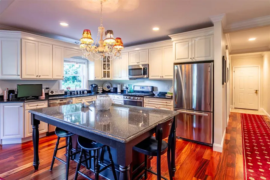 Elegant one-level living just minutes from Loon Mountain! This open concept floor plan includes a luxurious kitchen with quartz counter tops, stainless steel appliances, gas range, and Cabico soft-close cabinets and drawers. Beautiful details throughout, including crown molding, wood, marble, and granite flooring, recessed lights, and dimmers on every switch. This home is naturally cool in the summer (superb attic insulation) and warm in the winter (Rinnai heating systems) with the energy-efficient option of shutting off heat to bedrooms not in use. Ample garage storage, mudroom/ski-storage room, plenty of private parking, low maintenance landscaping ~ all with absolutely No HOA Rules or HOA Monthly Fees! Drive into your oversized, two-car, heated garage and it's time to relax.