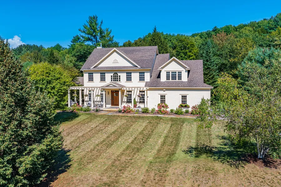 In an enclave of fine homes off Hanovers popular River Road, 6 Purling Brooks stands out for location, design, a pair of primary bedroom suites, and recent kitchen and bath upgrades. With one of the largest and most private backyards in the development, the property presents both stylish and functional indoor and outdoor living spaces. Starting with an open concept with cathedral ceilings, maple floors, and a gas fireplace, the chefs kitchen, upgraded by the current owners, presents everything one might need. In the warmer months, the 1300 sq. ft Brazilian Teak deck ties the entire back of the home together from the primary bedroom and outdoor shower to the screened porch. Outdoor cooking and dining areas, including a cedar bar topped with granite counters, are framed under a lighted pergola. A formal dining room and office flank the main entry foyer and the first-floor primary bedroom suite offers two walk-in closets, and en-suite bath with a jetted tub and a shower. First-floor laundry and mudroom entry to the attached two-car garage complete the ground level. The second floor, finished in rich Koa wood flooring, offers two more bedrooms as well as a second-floor primary bedroom suite with expansive built-ins and a stylish and modern en-suite bathroom renovation. A 10-minute drive north of downtown Hanover, the property abuts the 38-acre lower Slade Brook conservation area, the Waterfall Trail, and is near River Road.