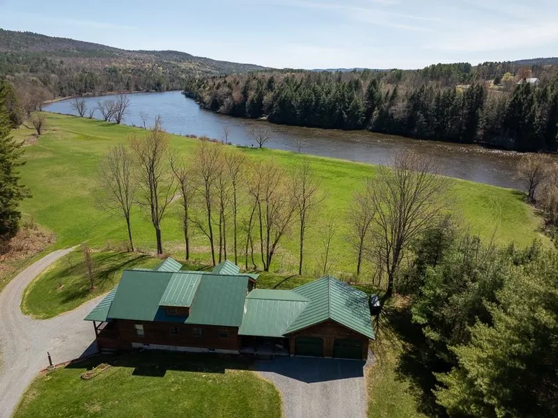 This rare New Hampshire property offers 31.41 total acres, including over 20 acres of open land with 8 acres of fenced pasture—perfect for horses, beef or dairy cows. The existing barn is ideal for agricultural use, and the land benefits from town water and substantial road frontage along both town and state-maintained roads, offering subdivision potential. Built in 2007, the Coventry Log Home features 3 bedrooms and 2.5 baths, including a main-level primary suite with a private bath. A heated mudroom/foyer connects the home to the attached garage, providing a functional entry point with space to transition from outdoor work or recreation. Inside, you’ll find cathedral ceilings, a loft overlooking the great room, and a full walk-out basement offering room for expansion or additional finished space. A heated attached garage and detached two-bay garage provide ample storage. Enjoy the outdoors with a full wraparound deck on two sides of the home, where you can relax in the hot jacuzzi overlooking the river, open fields, and local wildlife. A private floating dock provides access to 1,727 feet of Connecticut River frontage—ideal for fishing, kayaking, and canoeing. The 2024 tax bill was only $5,149, an incredible savings when compared to other towns. Whether you're looking for a homestead, hobby farm, recreational retreat, or investment with development potential, this property delivers versatility and exceptional waterfront living.