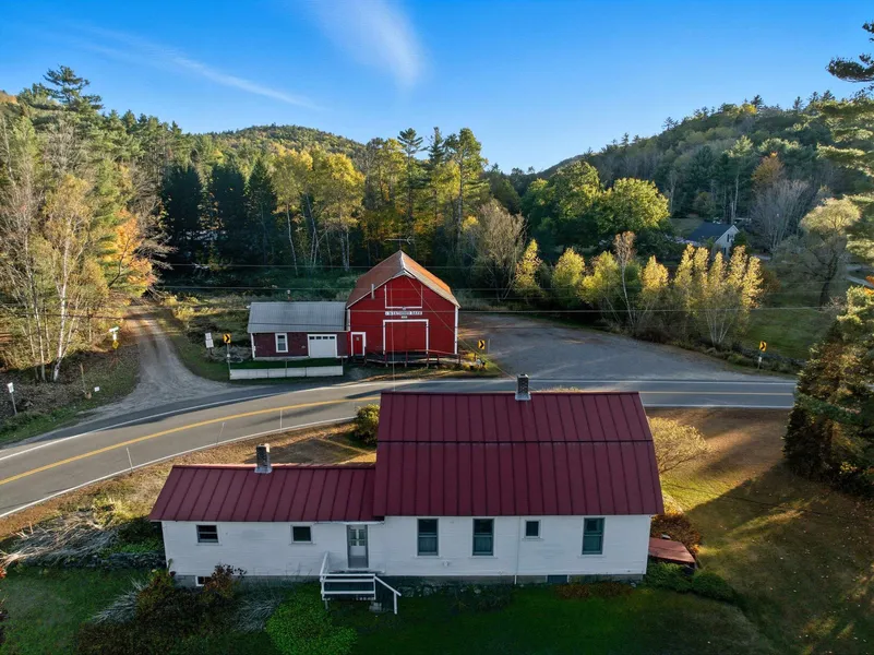 A rare opportunity to own two unique properties in the heart of Haverhill, NH! Set on approximately 2.46 acres, this offering includes a charming 1917 Gambrel-style home and a classic New England barn just across the road—perfect for those seeking a home with a 700 square foot heated workshop space, live/work potential, or commercial opportunity. The home sits on nearly 1.6 acres and blends warmth and character with practical updates. Inside are 2 bedrooms and 2 baths, hardwood floors, and abundant natural light. The first floor offers a fully applianced kitchen, dining and living area, family room or office, bedroom, full bath, and laundry room. Upstairs you’ll find a second bedroom, ¾ bath, and generous storage. The home features a drilled well plus rights to a gravity-fed spring, oil or coal heating options, and a durable standing seam metal roof. Across the road, the barn on 0.86 acres was previously used as a commercial space, featuring a +/-700sqft heated workshop with electricity (comes from house) and a chain hoist that remains. While it has no plumbing, it offers ample parking and flexible use for business, storage, or creative pursuits. Located in the Town of Haverhill—where there’s no zoning—the possibilities are wide open. Enjoy a peaceful country setting near Woodsville’s Main Street and an easy drive to Lincoln and the White Mountains. (Note: Generator in barn does not convey. Window ACs will convey.)