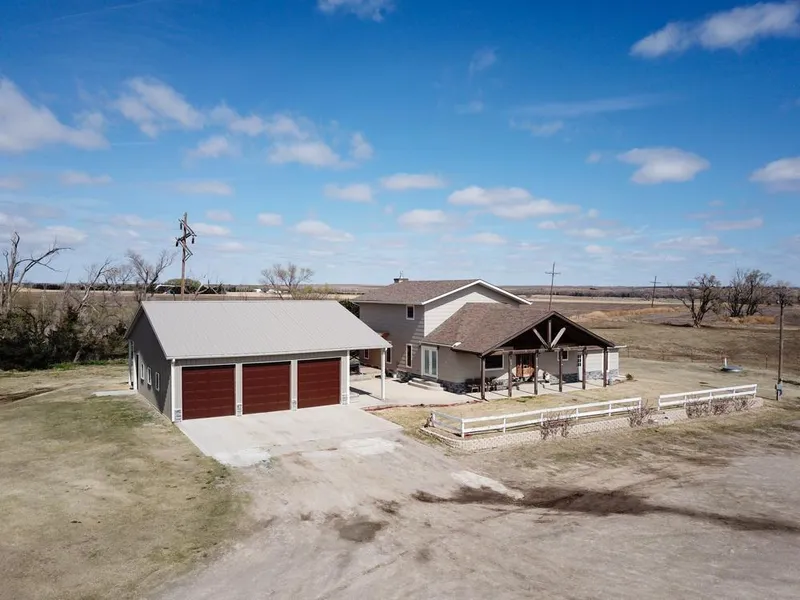 Just a short drive outside of Hill City, Kansas you will find this stunning custom home with an adjacent three-car garage. The original portions of this home were very recently remodeled and added to. The result is a 3,000 square foot home that feels entirely brand new. The 5 bedrooms and 3 bathrooms provide ample space for a large family or a multitude of guests. The kitchen features brand new custom cabinetry with granite countertops. A large dining area is adjacent to the kitchen with plenty of space for everyone to sit and eat together. The large living area on the main floor features beautiful, high ceilings with wooden beams, as well as a fully stoned fireplace. A large master bedroom and bathroom with a walk-in closet is situated on the main floor. The finished basement contains an additional living space, 2 bedrooms, and a bathroom. The upstairs provides an additional 2 bedrooms and bathroom, accessed via a gorgeous staircase and landing. Outside you will find a large patio on the back of the house and additional covered patio space between the home and garage.