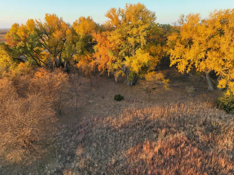 The tall grass provides excellent bedding for deer and ideal protection for upland birds. The towering mature cottonwoods are outstanding roosting trees for turkeys and provide perfect treestand setups for the archery deer hunter.