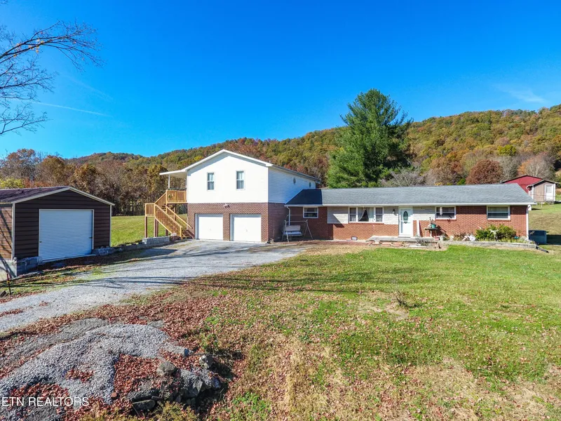Are you looking for a farm in beautiful East TN? Look no further! This stunning 2400+ sq ft home is situated on 34.5 acres, with approximately 17 acres cleared for your use. The property is partially fenced and includes a large barn and a serene pond, perfect for outdoor activities. You'll find multiple outbuildings for various purposes as well. The second-story addition above the garage features a spacious en suite, a cozy sitting room/den, and an office-ideal for working from home or relaxing. The main level boasts three bedrooms, one bathroom, and an impressively large kitchen to accommodate all your cooking needs. This unrestricted land is already set up for livestock, making it a perfect choice for farmers and animal lovers alike.