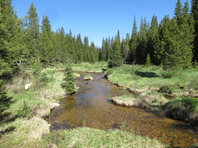 The virgin riparian area of Ranch Creek meanders through the valley floor for about two thirds of a mile creating pristine habitat for brook trout and the Colorado River Cutthroat trout. Ranch Creek also provides unlimited water for big game and wildlife alike. In addition to Ranch Creek, there are several smaller year round tributaries to Ranch Creek one of which cascades down glacial granite boulders creating your own surreal mountain setting. There are also spring fed natural ponds on the property creating additional water resources for wildlife.