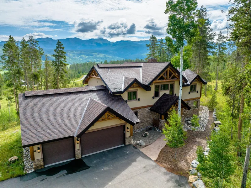 Located in the heart of the Rocky Mountains resides Sunset Ridge Estates. A prestigious community that captures the feel of mountain ranch living with Devils Thumb Ranch, one of Grand Countys most valued amenity, in your backyard. Nestled on 9.12 acres, this fully furnished custom home built by Big Valley Construction and designed by architect Alan Carter is thoughtfully situated to take advantage of stunning panoramic mountain views. The open floor plan has quality finishes throughout including beautiful hardwood floors, hand hewn beams, solid alder doors and trim, and vaulted ceilings with tongue and groove accents. The gourmet kitchen lends itself to entertaining on a grand or intimate scale with top-of-the line appliances including double ovens and gas cooktop, custom cabinetry, slab granite, spacious center island with breakfast bar and gracious dining area. The open and warm great room, adjacent to the kitchen and dining area, provides a welcoming atmosphere with a handsome stacked stone fireplace and a 2-story bay of windows framing stunning mountain views. An expansive composite deck, conveniently located off the dining area, extends the length of the home providing a private and relaxing retreat with a serene outdoor setting perfect for entertaining. The luxurious main floor master suite offers a gas fireplace, 5-piece bath, his and hers walk-in closets, and private deck access overlooking lovely views. The main floor also features a large laundry/mudroom with built-in cabinetry and storage, and powder bath. The upper level provides a gracious and functional layout with large loft, currently serving as an office, and a second master bedroom suite with 5-piece bath, his and hers walk-in closets and gas fireplace. On the opposite wing resides two additional bedrooms and a full bath. The fully finished walk-out lower level offers a secondary family room, generous recreation/billiards area with wet bar, spacious guest bedroom, bath, and patio access. Lastly, this home has ample storage throughout as well as a heated, three-car oversized garage with an epoxy finish and separate storage room.