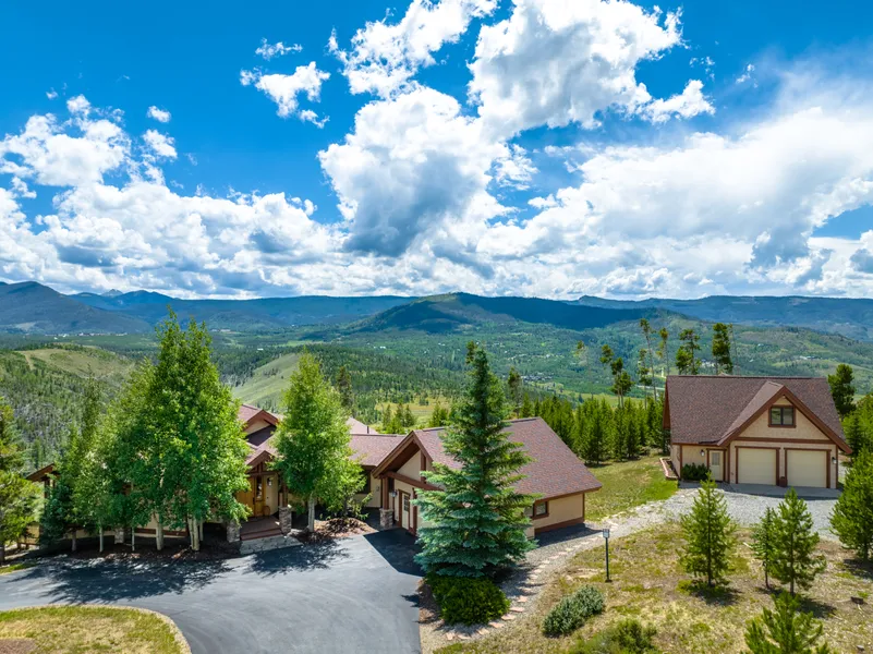 Located in the heart of the Rocky Mountains and tucked against the Continental Divide, Grand County is known as one of Colorado's favorite year-round playgrounds. Ten Mile Creek Estates is an exclusive gated community conveniently located in close proximity to four-season recreation. Situated on 39 acres, this luxurious home captures breathtaking mountain and valley views. Built by custom home builder, Boxwell Construction, with a thoughtful blend of rustic architectural elements and functional design. The open floor plan has quality finishes throughout including natural stone and hardwood floors, solid alder doors and cabinetry, exposed log beams, vaulted ceilings, and an abundance of windows providing natural light and gorgeous views. The gourmet kitchen lends itself to entertaining with Viking appliances including double ovens and a gas cooktop, large walk-in pantry, custom cabinetry, slab granite with a generous breakfast bar and a gracious dining area. Adjacent to the formal dining area, the open great room provides an inviting atmosphere with a handsome 2-story stone fireplace and a bay of windows bringing nature inside. An expansive, partially covered, deck located off the dining area and great room, extends the length of the home providing a relaxing retreat with a serene outdoor setting.