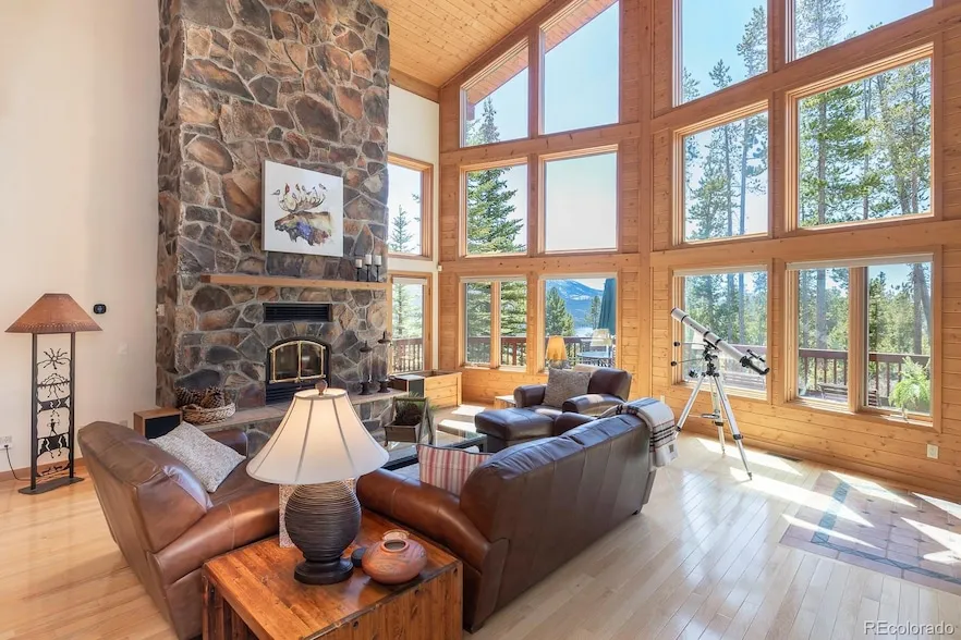 Stunning 5-Bedroom Retreat with Sweeping Views of Shadow Mountain & Grand Lake. Experience Colorado living at its finest in this pristine 5-bedroom, 3.5-bath home nestled on nearly 9 acres with breathtaking, panoramic views across Shadow Mountain and Grand Lake. From the moment you step inside, you'll be captivated by the Colorado charm and thoughtfully designed layout that maximizes natural light and showcases the stunning scenery from nearly every room. The main living area features a dramatic window wall overlooking Shadow Mountain Reservoir, creating a bright, open space perfect for relaxing or entertaining. Step outside to enjoy expansive, double-decker decks complete with a private hot tub area on the lower level and a spacious entertaining area above. Inside, the home boasts standout features including a cozy loft/study, a built-in bar area in the kitchen, and abundant storage throughout. Every detail of this home has been carefully considered to offer comfort, style, and a connection to the natural beauty that surrounds it.
