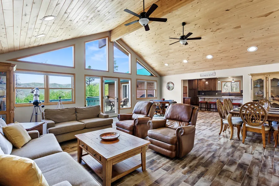 Discover the best of Colorado living on this exceptional 40-acre property featuring two homes and mountain views. The primary residence is a spacious 4-bedroom, 3-bathroom home, with a great room that showcases panoramic vistas, vaulted tongue-and-groove ceilings, and plenty of natural light. The gourmet kitchen boasts stone countertops, while the expansive primary suite offers a retreat from the business of everyday life. Three additional bedrooms provide plenty of space for family or guests. The second home—a charming 3-bedroom residence, is ideal as a guest house, rental unit, or caretaker's cabin, offering additional value and income potential. Enjoy the full range of outdoor activities with direct access to the National Forest; ride your ATVs, snowmobiles, horses, or bikes straight from your front door. With ample room to ...
