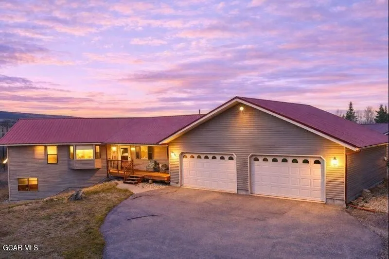 This exceptional 5 bedroom, 4 bath home sits on over 5 acres with sweeping mountain views and a beautiful mix of mature trees. The open-concept kitchen, dining, and living area creates a warm and inviting atmosphere, centered around a cozy woodstove. The spacious primary suite is a true sanctuary, featuring a large ensuite bath with a relaxing jetted tub. The finished basement adds even more living space with a generous recreation room and upgraded storage/utility room including 2 hot water heaters. Outside, functionality meets flexibility. The attached 1500 sqft garage includes a pull through bay and built-in dog kennel. An additional utility shed and greenhouse provide excellent options for storage and gardening. Zoned for horses and NO HOA! The stunning custom log staircase is crafted from natural timber, featuring thick solid-wood treads, rustic log railings, and a sculpted newel pos...