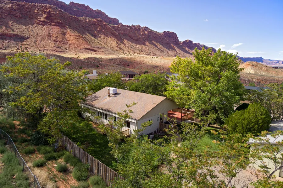 Shady Oasis in the Desert. This home has been updated throughout. Brand new flooring, bathroom vanities, paint and metal roof. The home offers 3 bedrooms, 2 bathrooms, large mature trees that shade multiple outdoor spaces and a beautiful, lush green yard. There is a detached 2 car garage/shop and also a large storage shed. Well water is used for the landscaping irrigation, culinary for the home. The property home sits on 1.2 acres and offers magnificent views of the red rocks and Lasal Mountain Range. Livestock and Horse friendly zoning. Seller offering a credit for rate buy down or closing costs. Seller Financing available as well.