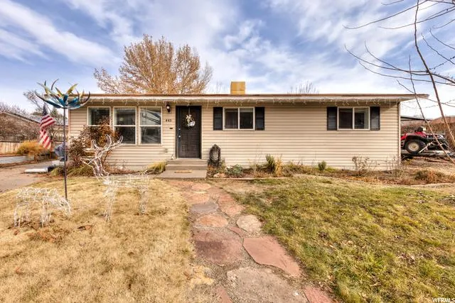 Beautiful well kept single family home in the heart of moab! Convenient location in a cul de sac just off Main st. with no HOA. Right out your front door enjoy walking or biking throughout downtown, with sidewalks leading all the way to the Millcreek Parkway. Single-level living! Bright and spacious living room, new paint, kitchen with bar top and dining area, three bedrooms, and updated full bath with tasteful tile work. From the crown molding to the wainscoting this home is move-in ready and one you won't want want to miss! And as a bonus: The sliding glass doors take you to a large fully landscaped fully fenced back yard with mature trees, fruit trees, and flower beds. RV parking on both sides of the home. Don't miss the large storage shed which features shelving, work surfaces, and electrical power.