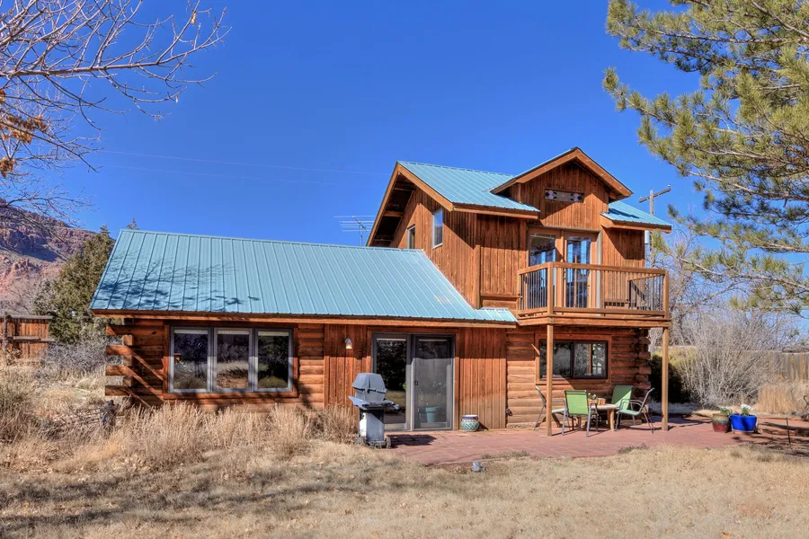 Charming countryside retreat, escape the hustle and bustle of Moab on this quiet dead-end street with outstanding views of the LaSal mountains. This expansive 1-acre property with mature trees and a low maintenance buffalo/blue grama lawn provides ample space for outdoor activities, gardening, or possibly an ADU Crafted with attention to detail, the cottage boasts one large sunny loft bedroom with French Doors to a private balcony and one tastefully remodeled bath with ample storage and a stack washer and dryer. The spacious light filled living area with a vaulted ceiling opens to a south facing patio for easy entertaining and to the kitchen/dining area. Square footage figures are provided as a courtesy estimate only and were obtained from Grand County. Buyer is advised to obtain an independent measurement.