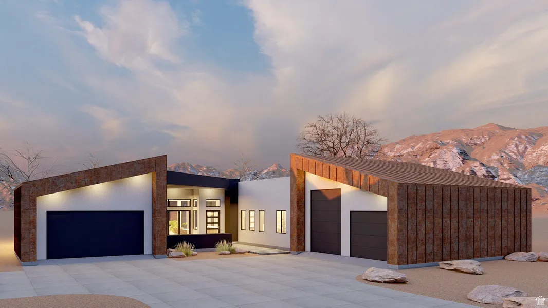 STUNNING NEW BUILD featuring sleek, contemporary design- newly re-designed and re-imagined! Set on a spacious .40-acre home site in the Puesta del Sol community with custom orientation for ultimate privacy and views surrounded by red rock and the towering Moab Rim. A soft industrial finish featuring custom metal work, quartz countertops, floor-to-ceiling windows, quality stainless steel appliances, waterproof Luxury Tile floors, Anderson windows & exterior doors, and electric multi-programable fireplaces. The layout has superior function, celebrating two master en-suites, two additional guest bedrooms with a full bath, and mudroom with laundry. Both en-suites grant dual sinks, lavish showers with glass doors, and ample closet space. Plenty of space for parking along with an attached 2-car garage with room for a sprinter van, as well as a third car garage with double roll up doors- for your toys or your entertaining room! All the renderings are great examples for you to enjoy but are not specific to a guaranteed finish.