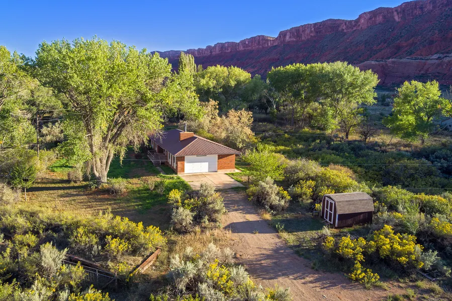Nestled in the heart of Castle Valley, this property offers breathtaking views of rugged Castle Rock and a lush, natural landscape. Towering trees and diverse vegetation create a private sanctuary, immersing you in the beauty of the serene surroundings. The charming residence features three bedrooms and one bathroom, presenting an excellent opportunity for customization to match your vision. Recent upgrades include a new electric hot water heater (installed in April 2024), along with a wood stove and a wood-burning fireplace for warmth and ambiance. With its stunning vistas and abundant natural beauty, this property is a rare opportunity to craft your dream retreat on an expansive 15-acre parcel.