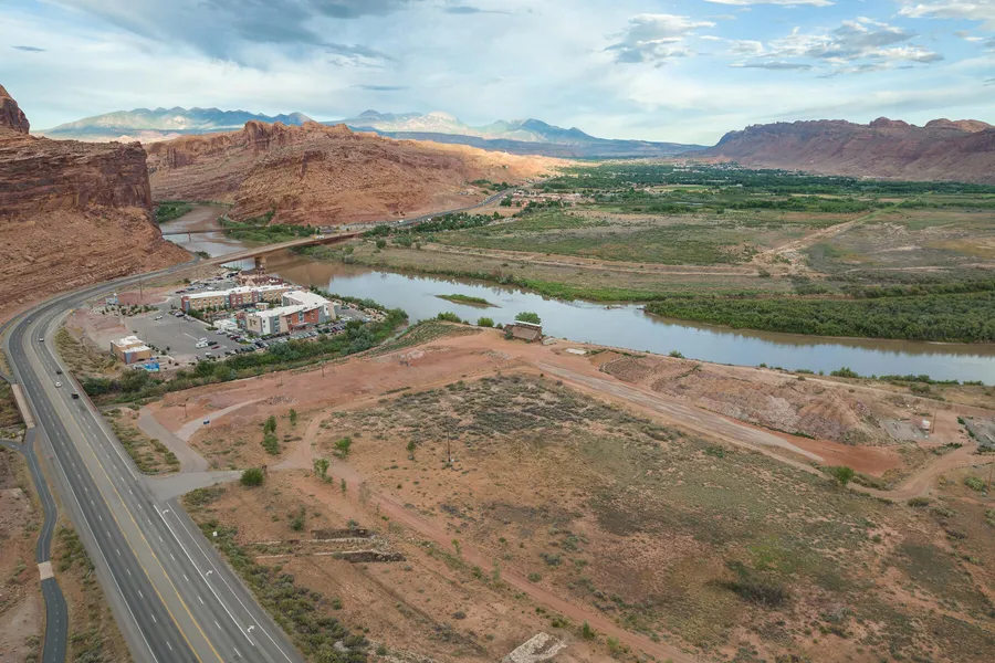 Nestled between Arches National Park and the entrance to the Moab Valley, seize this rare opportunity for commercial development with Colorado River frontage. Zoned Grand County Highway Commercial, development opportunities include luxury condominiums or mixed-use commercial. Water rights are included in the sale, a water and sewer treatment plant is located on an adjacent parcel, and on-site power is available.