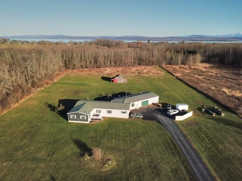 Situated in a prime location, this residence has been well-maintained & thoughtfully designed w/ 4 beds, 3 baths, 2 living rooms, & an expansive kitchen & dining area w/ walk-in pantry. The generous living room is bathed in natural light, enhanced by hardwood floors & a wood stove circulating warm air throughout. The primary suite is tastefully updated, offering a spacious walk-in closet & bath equipped w/ separate vanities. A generous in-law suite (20x24), complete w/ 3/4 bath & convenient kitchenette, provides a private oasis for guests or extended family. The large (42x26) heated attached garage features overhead doors on two sides, presenting ample space for storage & projects. This home is further enhanced by mini split/heat pumps ensuring comfortable living year-round. Extensive backyard featuring a gravel patio w/ built-in fire pit, 4 mature raspberry bushes, newly planted apple trees, elderberry bushes, & more raspberry bushes. Adding to the property's charm is a two-story 24x24 barn w/ hayloft & chicken coop. All this set on a sprawling, level 12+ acre lot w/ potential for subdivision. Moreover, its advantageous location on Route 2 opens doors for potential home-based businesses. Near schools, town services, marinas, & a mere 30-minute drive to Burlington. This property is a multifaceted gem that caters to various lifestyles & aspirations, blending comfort, convenience, & possibilities in one captivating package. Come visit today!