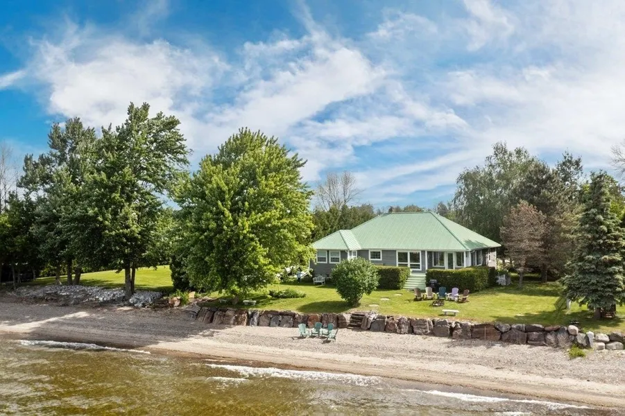 Imagine awakening every day to the sound of waves crashing on your own beautiful, private sand beach. This magnificent home represents the best in lakefront living. With over an acre of land and 117' of direct west facing broad Lake Champlain frontage, every day will feel like vacation as you take in the blazing sunsets and the gorgeous vistas of the Adirondack Mountains. The home itself features three bedrooms and two full baths including a lakeside primary bedroom suite with a huge jetted tub and walk in closet. The focal point of the open floor plan is an amazing custom built kitchen featuring high end appliances, a granite sink and cabinetry handmade by Vermont craftsmen. It also boasts an attached two car garage and detached carriage barn. The cedar siding and standing seam roof provide a level of permanence. Convenience and peace of mind come with a private boat ramp and mun...