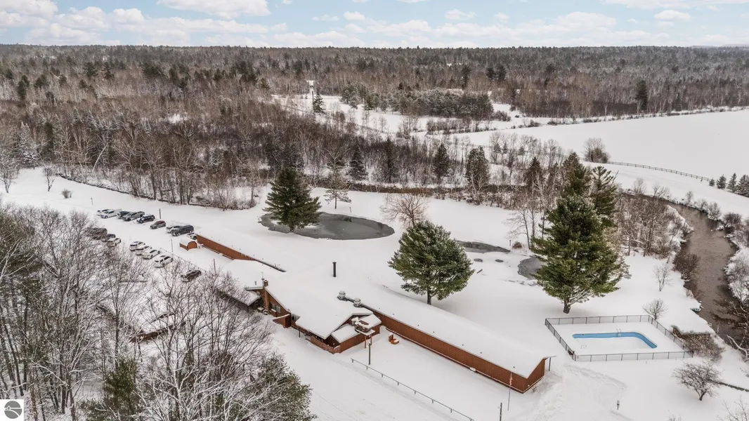 Ranch Rudolf. A Four-Season 40-Acre Resort in Traverse City, Michigan Nestled in the heart of the Boardman Valley, along the banks of the scenic Boardman River, Ranch Rudolf offers a rare opportunity to own a historic four-season, 40-acre resort in Traverse City. This unique property combines lodging, recreation, and event hosting, all surrounded by the natural beauty of the Pere Marquette State Forest. The resort features 15 motel units, a private house, and a full-service restaurant with seating for 147 guests complete with a liquor license. Additional facilities include a 55-person meeting room, pavilion/game room which holds 113 people, 25 campsites with restroom/shower buildings, a canoe, Kayak and inner tube livery, laundry room, garage, and linen storage building. Guests enjoy a wide variety of amenities underground heated swimming pool, two stocked trout ponds, and 1,300 feet of private frontage on the Boardman River. The property has become a well-known venue for weddings, conventions, company picnics, holiday parties, and family reunions, drawing both local and destination visitors. Seasonal attractions enhance its appeal with canoe and tube rentals in the summer and a winter snowmobiling haven with direct access to 100 miles of groomed trails in Grand Traverse County connecting with other groomed trail systems. Cross-country skiing is also nearby with access to Muncie Lake Pathways, the VASA Trail, North Country trail and Sand Lakes Quiet Area. With its combination of lodging, dining, recreation, and event space, Ranch Rudolf is a one-of-a-kind Northern Michigan resort destination with endless potential for future growth. This piece of Northern Michigan paradise 16 miles from downtown Traverse City.
