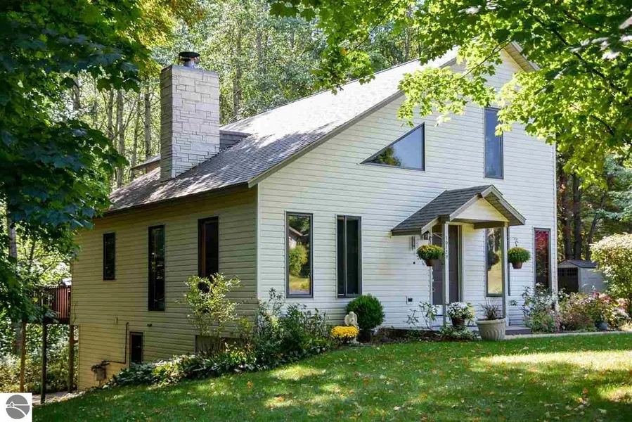 Modern 1 1/2 story home w/ shared water access on the north side of Long Lake! Just minutes from downtown Traverse City, Interlochen, Sleeping Bear Dunes or the quaint Village of Lake Ann, this property includes 270 of sandy frontage on Long Lake with a private boat slip/docks shared by only 18 residents. No more trailering every time you want to be on the water. The interior of the home is clean & modern with a neutral palette, where everyone has their own space and has been cleverly designed to utilize the space to it's maximum potential. Large kitchen with island is perfect for family gatherings. A lengthy features list of this 100% updated property includes a two-sided custom stone gas fireplace shared by both living room w/ cathedral ceilings & a family room that walks out onto a fantastic elevated deck. You will love having an abundance of privacy surrounded by your 2.43 acres of o...