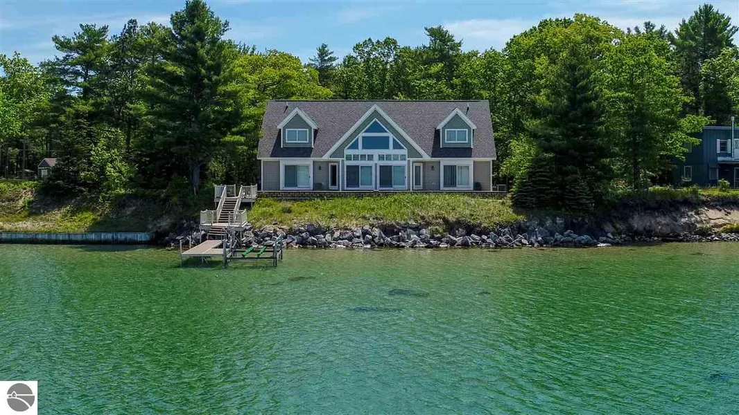 Prepare to be amazed when you walk into this beautiful home looking out over East Grand Traverse Bay with 106' of frontage and a beautiful sandy bottom beach. And the views...they are absolutely outstanding! Situated in a serene neighborhood on a private road, this 5 BR, 5 BA home has been uniquely designed for a large family. Offering a fabulous gourmet kitchen w/ an island and all the amenities one would expect in a home of this caliber, you will never tire of the views of the water & Old Mission Peninsula from almost every room. Bedrooms have been cleverly arranged to provide privacy for both your family, and for the guests that will all be anxiously awaiting their invitation. The over-sized deck is an entertainers dream come true with an ever changing backdrop of blue water & western sunsets. East Bay provides some of the best swimming, boating, and fishing in the world and you have ...