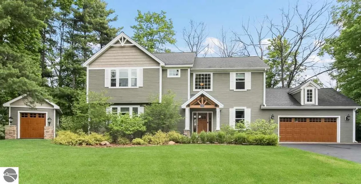 Don't miss the 3D Tour. Need space? Love to entertain? This is the home for you on Old Mission Peninsula overlooking the east arm of Grand Traverse Bay with 368' of shared access. 4bd, 3.5ba, Den, 3645sf of beautiful living. Water view from every east facing window with 2 extra large decks you'll want to spend every minute of spring, summer and fall on. Covered Lower deck with kitchen w/Quartz, gas grill, TV. Open concept living with large kitchen, maple floors and cabinets, Granite counters, SS appliances. Large dining area for a family size dining table. 3 gas fireplaces-Main floor, lower deck and lower family room. Watch the sun rise from your large master suite with double walk-in closet w/laundry connection. New carpet upstairs in all rooms. On a quiet cul-de-sac. Highly desirable area and features. Bring your boat. Don't wait to view!