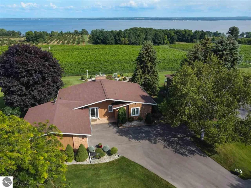 Looking for a MILLION DOLLAR VIEW? This house is for you! Home offers breathtaking SUNSETS & East Bay Views on OMP from every room, or enjoy a morning brew watching the world wake up on the full length deck. The home has many updates: Kitchen w/Cherry cabinets, granite counters, newer appliances, natural bamboo flooring through upper level, Pella Triple door walls, 2 gas fireplaces, main floor bedroom & laundry, 2.5 finished garage well established landscaping/UG, mature trees offer privacy in this desirable Horizon Hills subdivision. Minutes from downtown Traverse City & the boat launch. LL level walkout updated/w new carpet, paint & built-ins, gas FP, 2 bedrooms, bath + tons of storage. Views from every room here too.