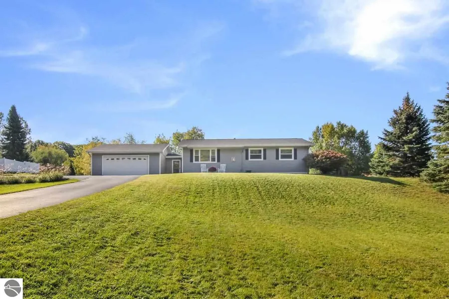 This well maintained three bedroom, three bath ranch home is situated on one acre and is 6 miles from downtown Traverse City. Enjoy the views sitting by the stone fireplace. The back deck is great for entertaining and private owners suite with vaulted ceilings is not to be missed. There is plenty of storage in the 28X24 two car attached garage with an RV parking pad and electrical hookup on the side of the garage. The finished lower level offers another living space with full bathroom and room to finish the partially completed 4th bedroom which has an egress window and closet in place. Those home is spacious and clean, don't miss it. Roof, Windows, Siding replaced in 2015.