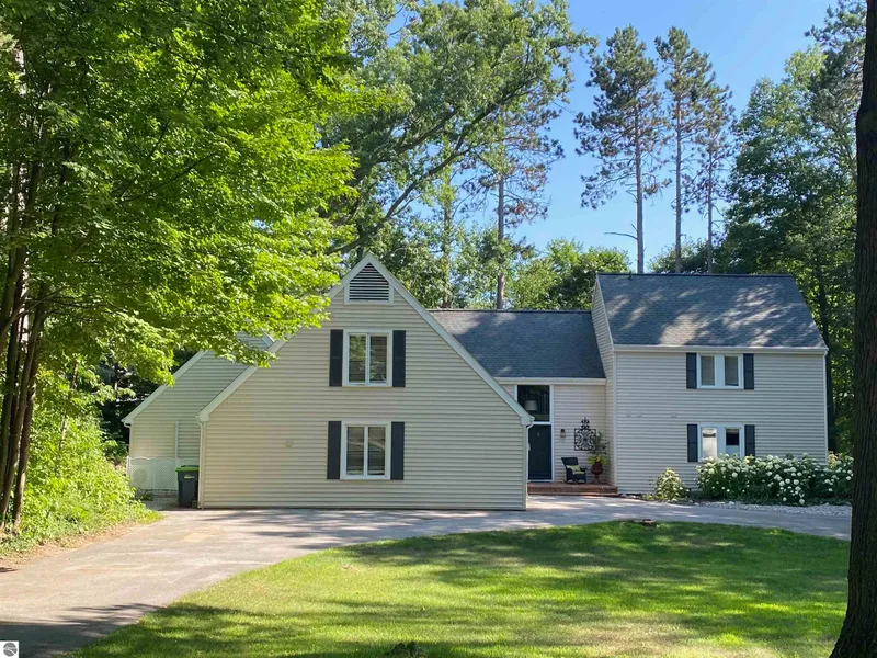 Prime location in the city limits at the base of spectacular Old Mission Peninsula. Wooded setting is over a half acre with beautiful back yard and access to hidden Highland Hills park area. Active community set central between East and West Bays. This spacious, yet cozy, extensively remodeled by Burkholder Construction home has 5 bedrooms with an option of a sixth. Office space off the upper bedroom with a balcony. Main floor primary bedroom and upper floor bedroom suite that could also be used as primary. Stellar kitchen with two wall ovens, wet-bar and open counter-space. Large breakfast nook and formal dinning area. Full Basement. There is a place for everyone in this home plus a oversized two car garage and circle driveway. Separate entrances and stairway to potential mother-in-law suite. Great for hosting gatherings! Near downtown Traverse City, restaurants, civic center, grocery s...